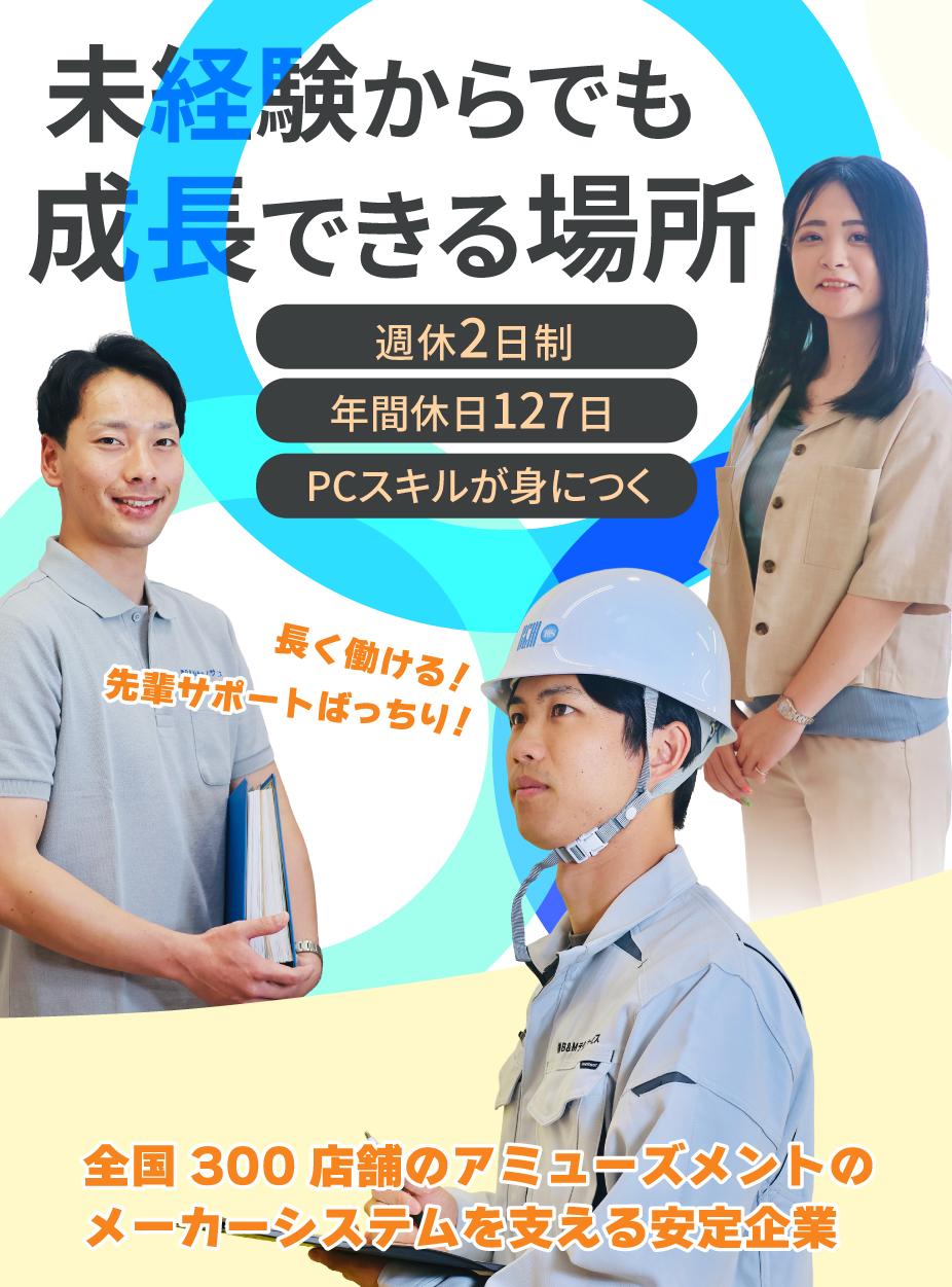 当社は、全国に300店舗以上を展開するアミューズメント施設のシステムを開発されているメーカー様の下請けとして、システムに関わる通信機器などの設備工事、システム管理、部品管理などを手がける安定企業です。
