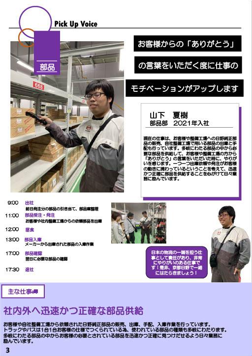 「人、そして物の移動を支え、豊かで住みよい世界と未来に貢献する」というHINOの基本理念のもと商用車の販売・整備だけでなく、全国のトラック・バスの24時間運行サポートを通じて、日本の物流に大きく貢献しています。